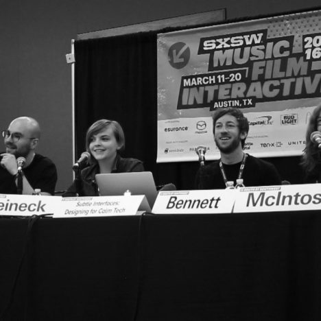 I attended SXSW for the first time last week to present a panel on “Subtle Interfaces: Designing for Calm Tech” along with Verity Macintosh, Chloe Meineck and Tom Metcalfe.