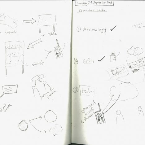 Discussion around archaeology, gifts and tech. Ideas included talking artefacts, display cabinets, in-trench vs on-table interactions…
