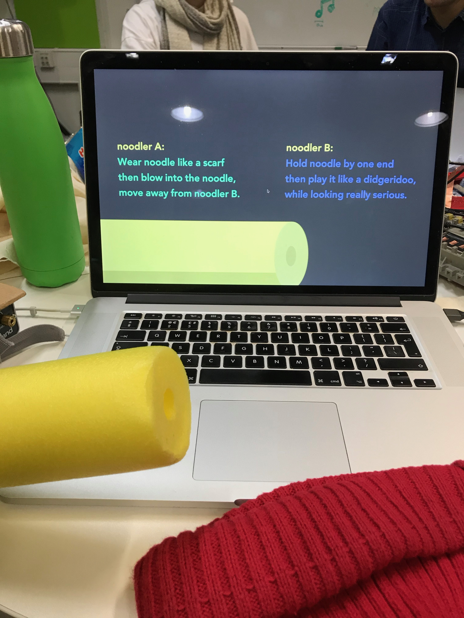 Pool noodle improv scores, kazoo-to-text and spraycan-shakers.