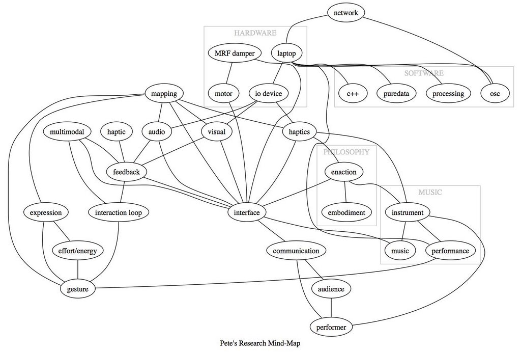 Have been learning to use GraphViz to create a research mind-map. So far I’ve only produced a small map, which isn’t particularly useful. Hopefully when the map grows to giant proportions, it will prove to be a good representation of my research interests…