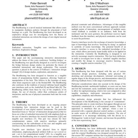 You can download the paper that accompanied the interactive demo of the BeatBearing at NordiCHI’08 here:http://www.sarc.qub.ac.uk/~pbennett/papers/Pete2008BeatBearing.pdf(clicking on the images above gives you a jpeg preview and not the real thing) At the…